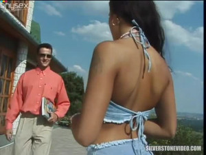Alluring brunette Stella Cox gives yum-yum blowjob to one tanned dude