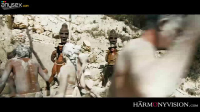 Crowd of spoiled bitches give simultaneous blowjob to aroused dude outdoor