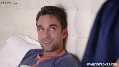 Tattooed brunette chick Emily Parker wakes up dude with a nice blowjob