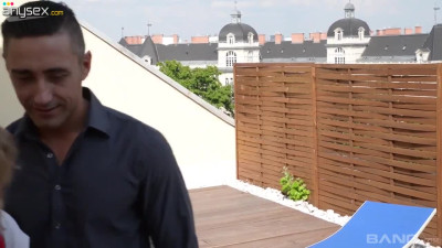 This chubby old guy with big cock eats out hot teen