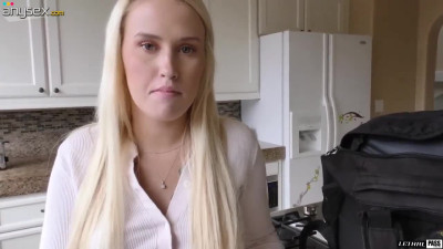 Short haired blonde gal with perky titties gives a nice blowjob with joy